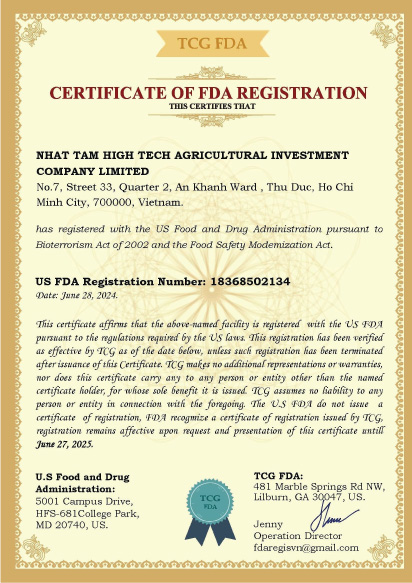 Về chất lượng, Tavie Nuts đã đạt được nhiều chứng chỉ như ISO, HACCP,… và đặc biệt là chứng nhận FDA – tiêu chuẩn xuất khẩu sang thị trường Châu Âu.