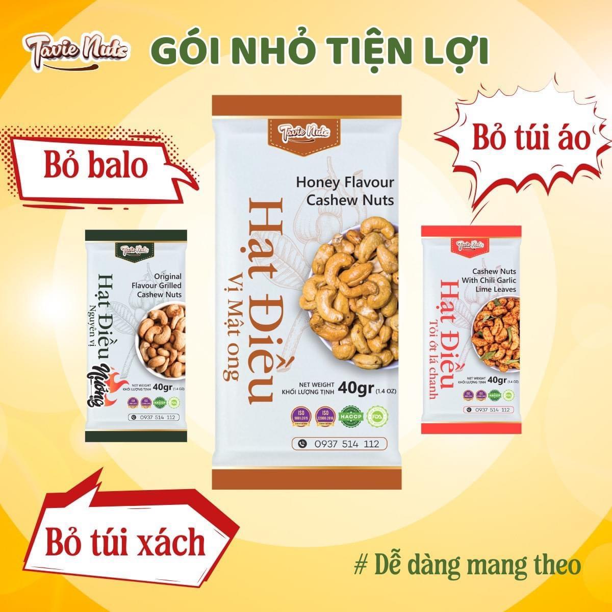 - Tiện lợi: Hạt điều được đóng gói nhỏ gọn, dễ dàng mang theo bên mình khi đi du lịch, dã ngoại hoặc làm quà tặng cho người thân, bạn bè.