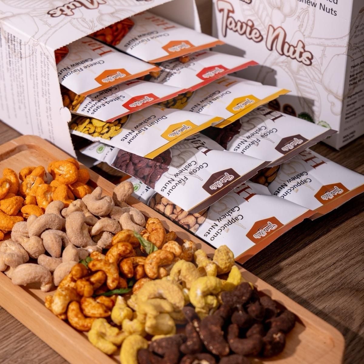 Hộp 10 gói hạt điều tẩm vị ăn vặt - Hạt dinh dưỡng healthy an toàn cho sức khoẻ - Food Nuts Snack Dinh Dưỡng Thức Ăn Hằng Ngày